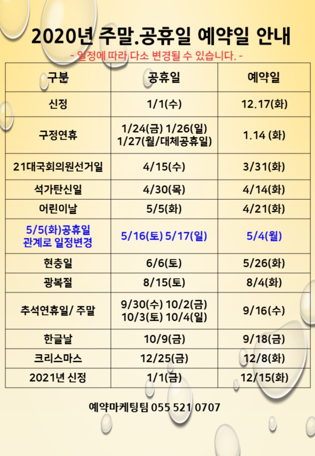 | 2020³â ÁÖ¸» °øÈÞÀÏ ¿¹¾àÀÏ ¾È³» | °ü¸®ÀÚ | |||