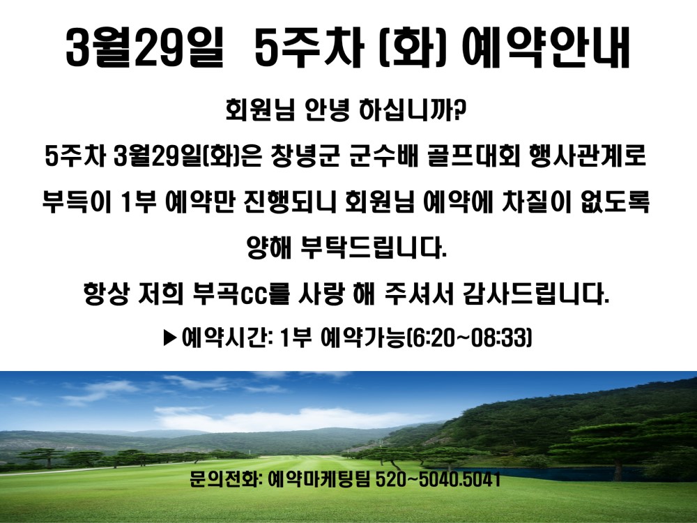 | 3¿ù 29ÀÏ 5ÁÖÂ÷(È) ¿¹¾à¾È³» | °ü¸®ÀÚ | |||