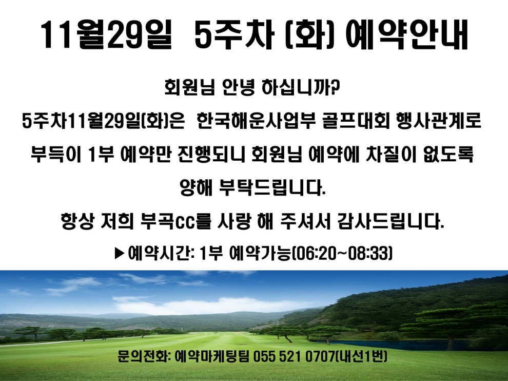 | 11¿ù 29ÀÏ 5ÁÖÂ÷(È) ¿¹¾à¾È³» | °ü¸®ÀÚ | |||