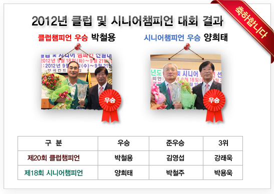 | 2012³â Ŭ·´ ¹× ½Ã´Ï¾îèÇǾð ´ëȸ °á°ú | °ü¸®ÀÚ | |||
