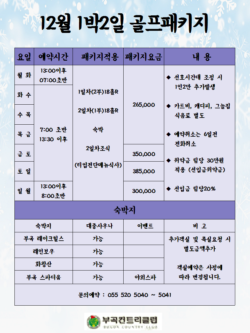 | 12¿ù 1¹Ú2ÀÏ ÆÐŰÁö ¿ä±Ý¾È³» | °ü¸®ÀÚ | |||
